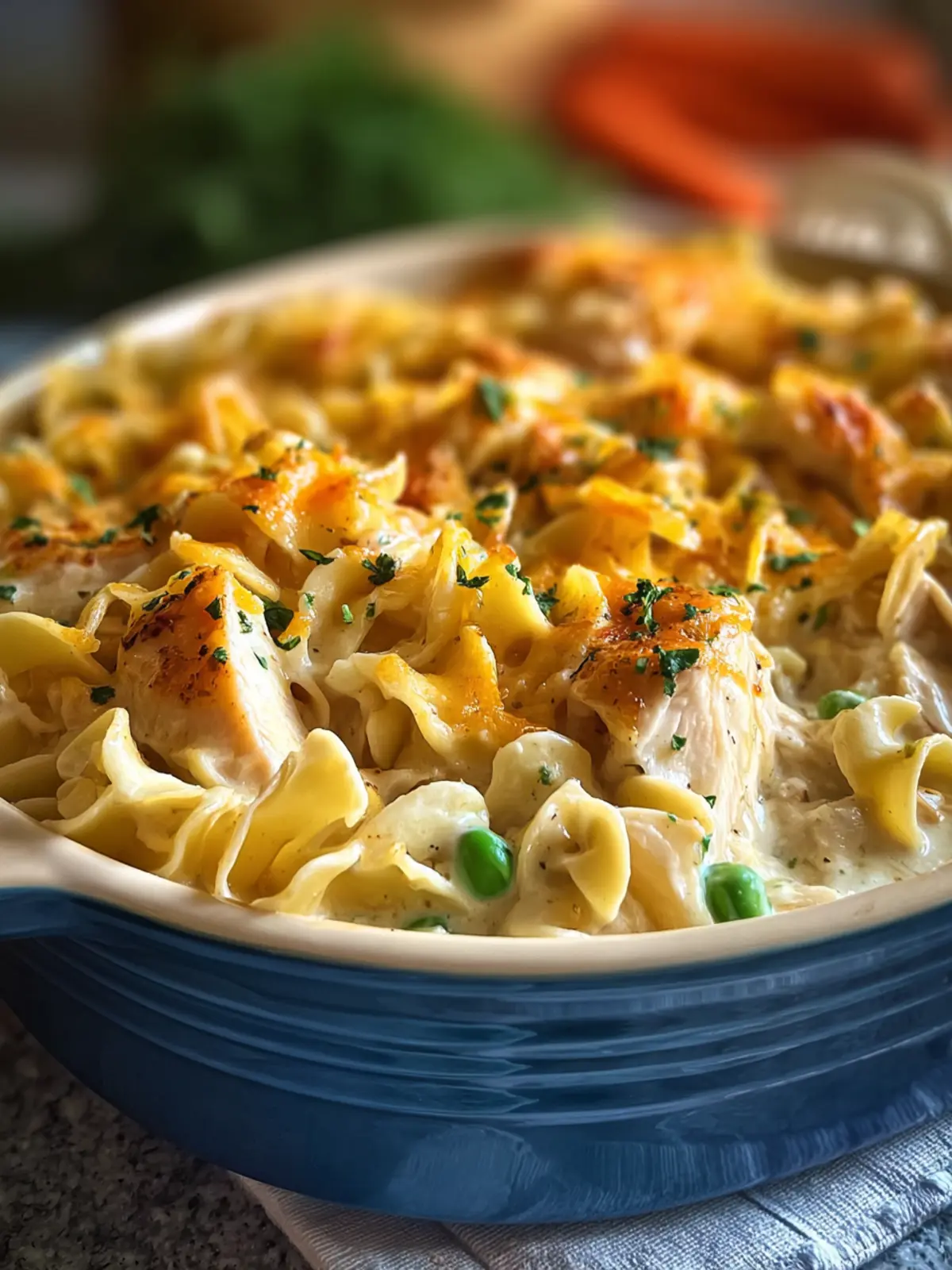 A delicious and creamy chicken noodle casserole that’s quick to prepare and perfect for a family dinner.