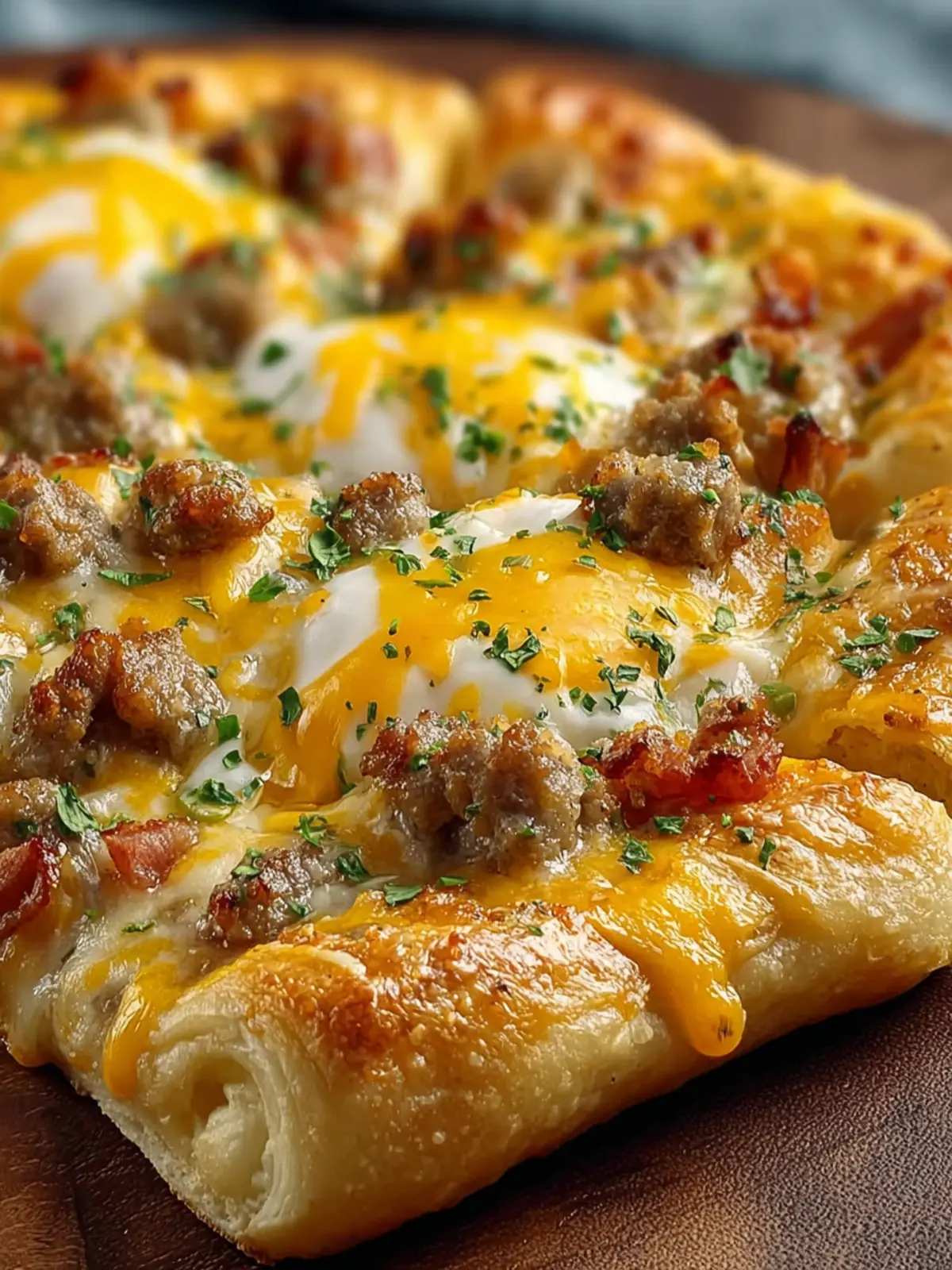 A delicious breakfast casserole featuring sausage, eggs, and cheese baked in a crescent roll crust.