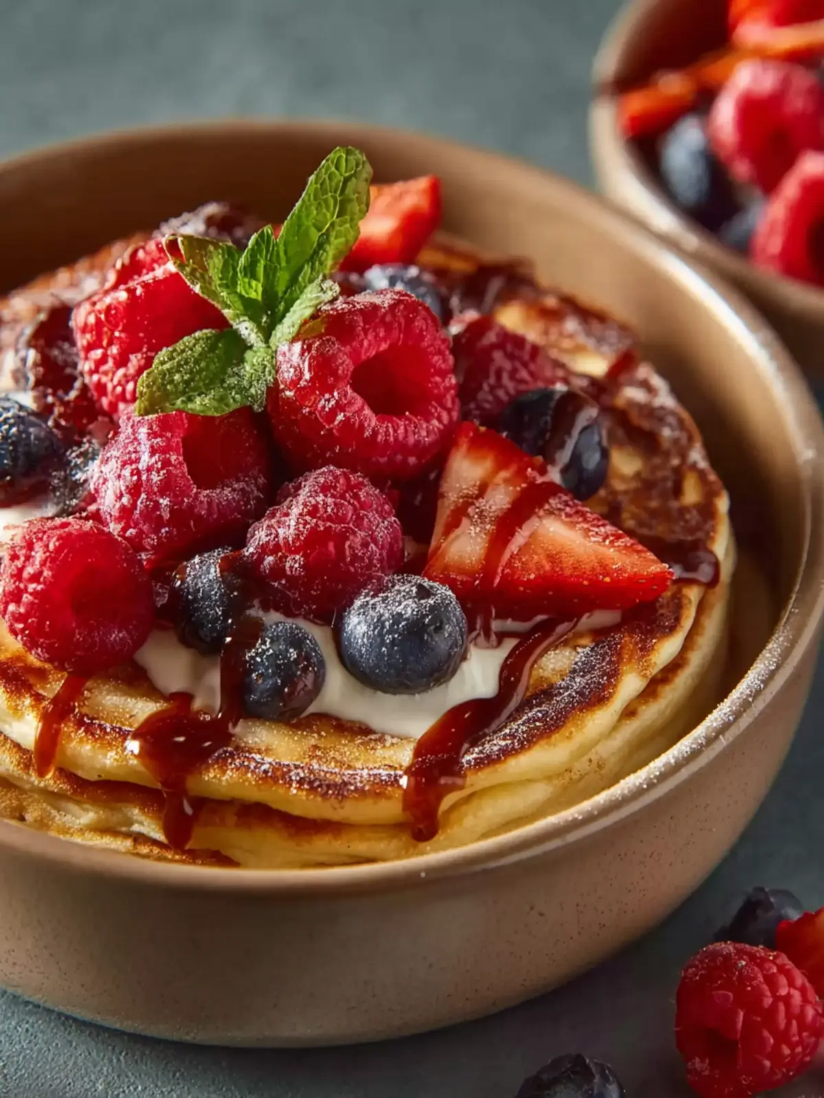 - Assemble Your Bowl: When ready to eat, layer a few pancakes into a bowl. Top with Greek yogurt, a handful of fresh fruit, a drizzle of nut butter, and any other favorite toppings. You can even warm the pancakes slightly in the microwave before assembling for that fresh-off-the-skillet feel.