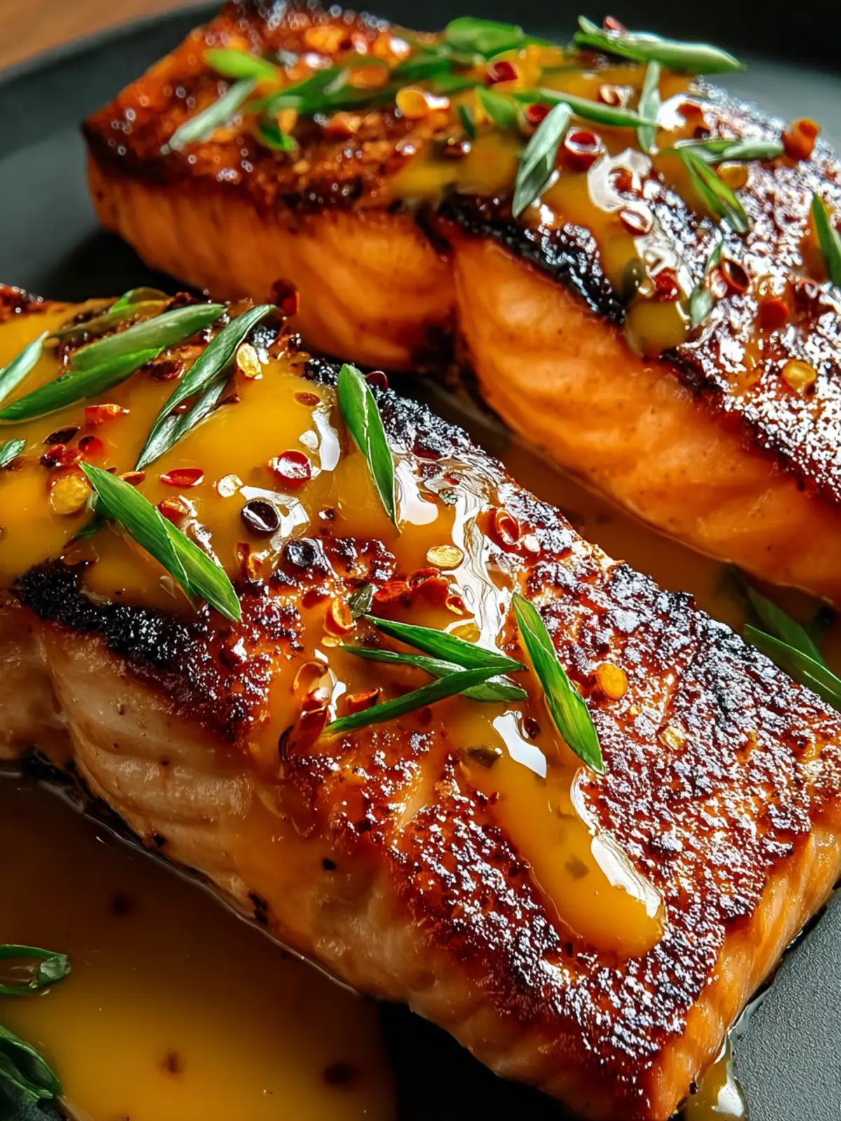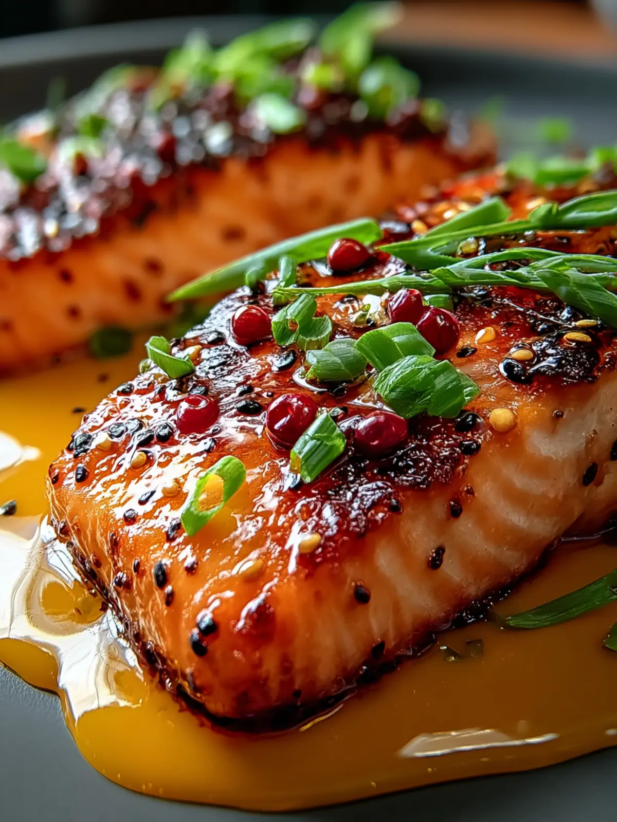 Green Onions: Sliced green onions not only bring a pop of color but also a fresh, mild onion flavor that balances the richness of the salmon and sauce.