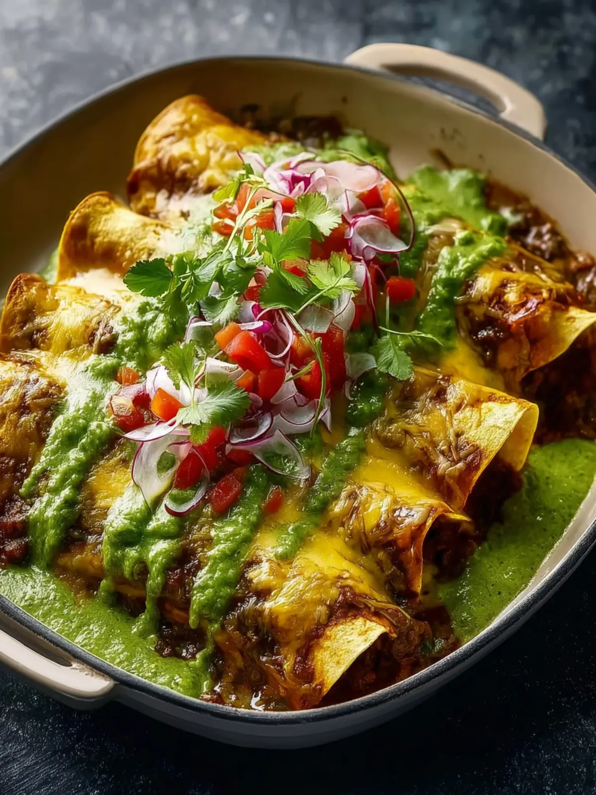 In the end, irresistible beef enchiladas with green sauce are not just a meal; they embody the spirit of comfort food with a hint of zest. Picture returning home after a long day, only to be greeted by the warming aroma of beef simmering with spices, enveloped in a vibrant green sauce. This dish transforms simple ingredients into a culinary hug, perfect for sharing with friends or savoring solo on a cozy night in. Whether you’re an experienced cook or just starting out, these enchiladas offer a satisfying journey of flavor and warmth, inviting you to make it a regular feature on your dining table.