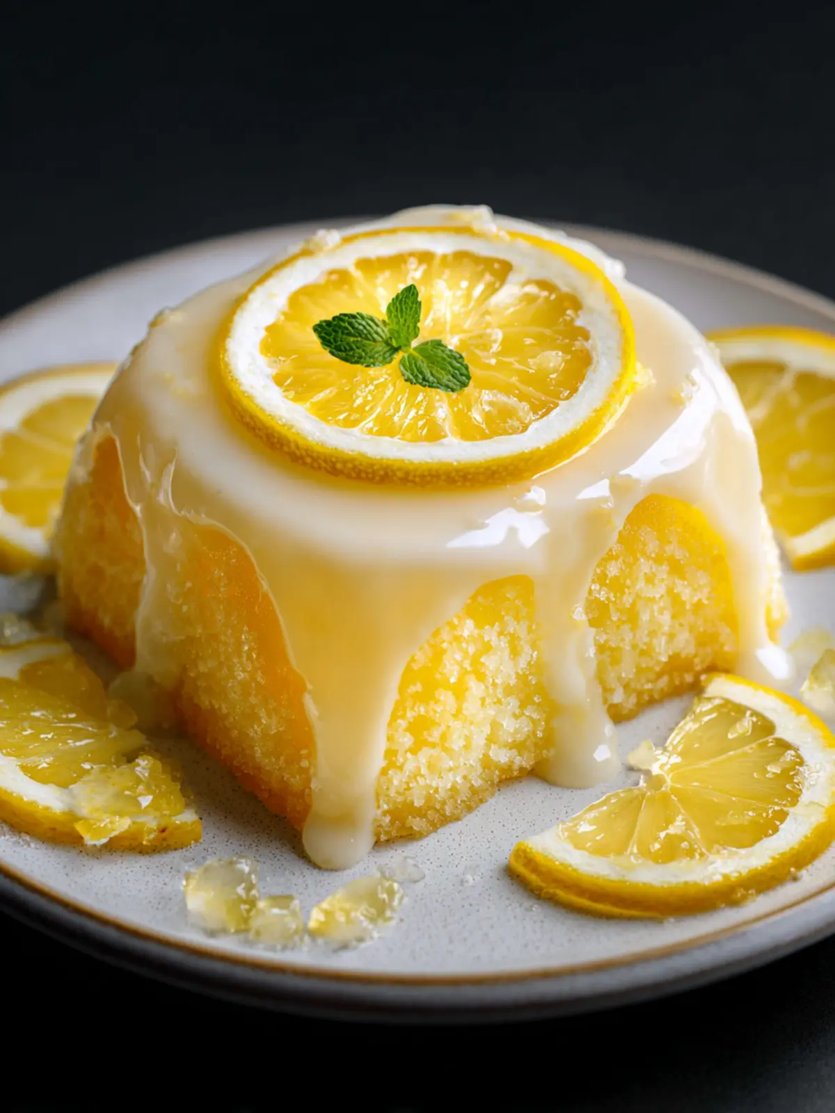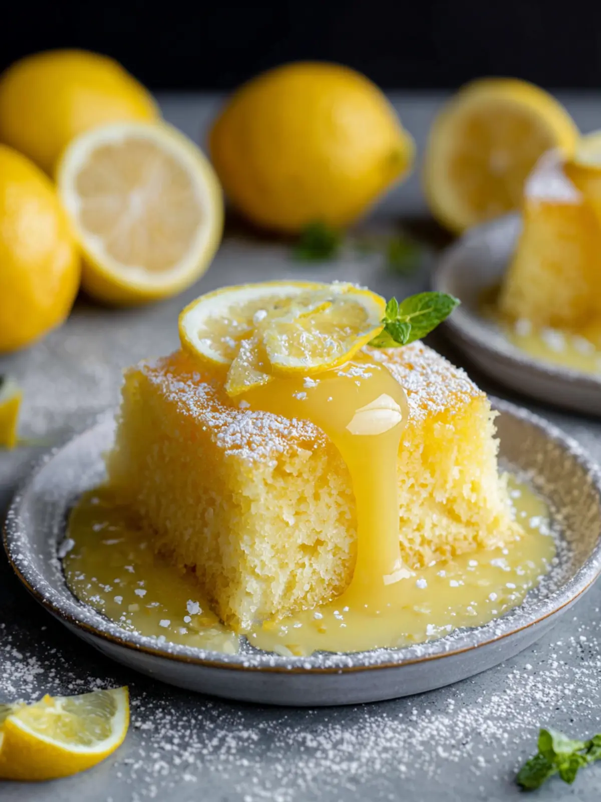 • Decorative Platter: Present the cake on a decorative cake stand or a colorful platter, garnishing it with lemon slices and mint leaves for a pop of color.