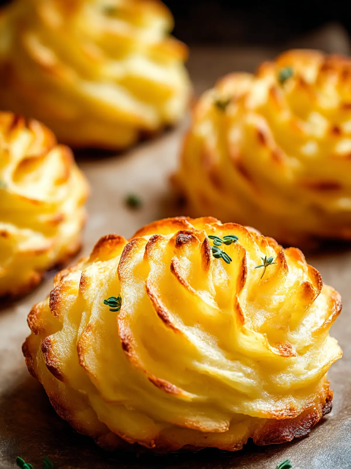 Piping Perfection: Use a star piping tip for beautiful, spiraled peaks. This not only helps achieve that classic Duchess look but also allows more surface area for browning, enhancing flavor.