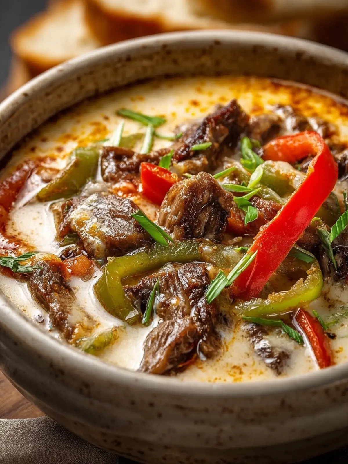 Imagine curling up on the couch with a big bowl of this hearty soup, its warm and savory notes enveloping you in comfort. The combination of tender beef, sautéed onions, and sweet peppers infused into a silky broth will remind you of your favorite cheesesteak, all while being surprisingly effortless to whip up.