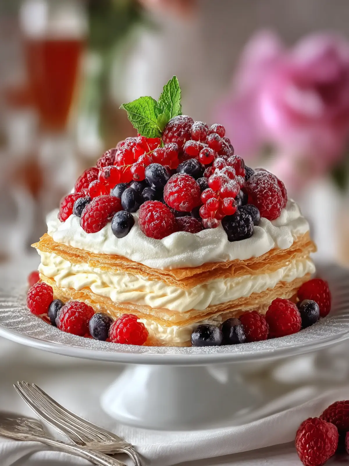 A deliciously layered dessert featuring puff pastry, mascarpone cream, and fresh berries.