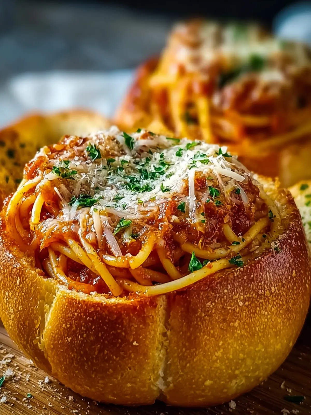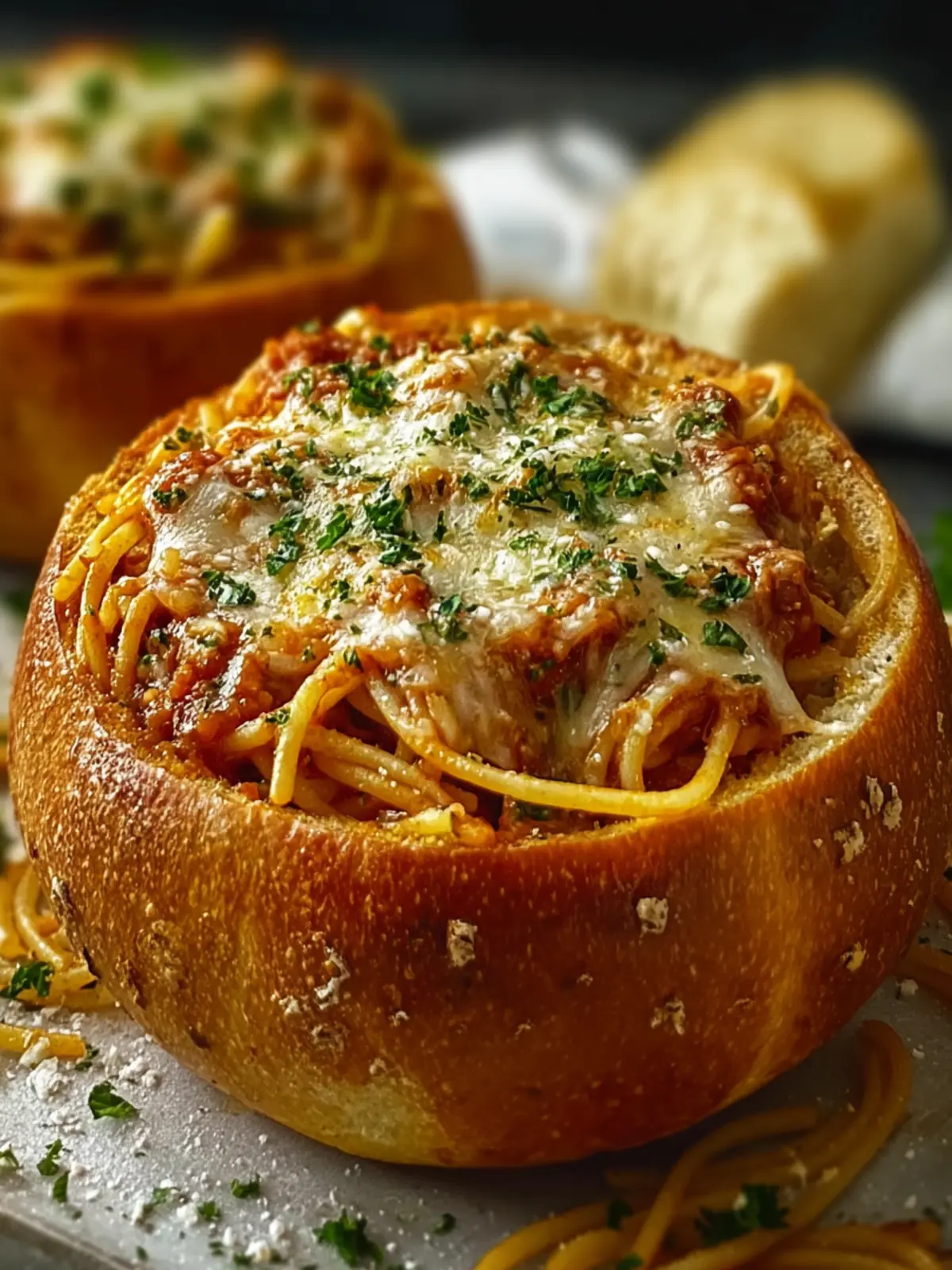 Serve your spaghetti garlic bread bowls right after baking. This ensures the bread remains crispy while the spaghetti is warm and flavorful. A sprinkle of fresh herbs or Parmesan cheese right before serving adds that finishing touch.