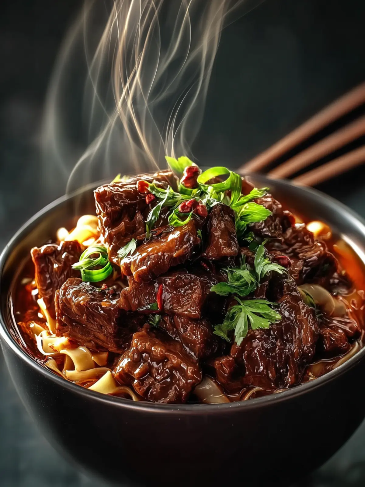 Steamed Greens: Serve with steamed bok choy or Chinese broccoli on the side. Their slight bitterness and crisp texture create a perfect contrast to the sticky sweetness of the beef noodles.