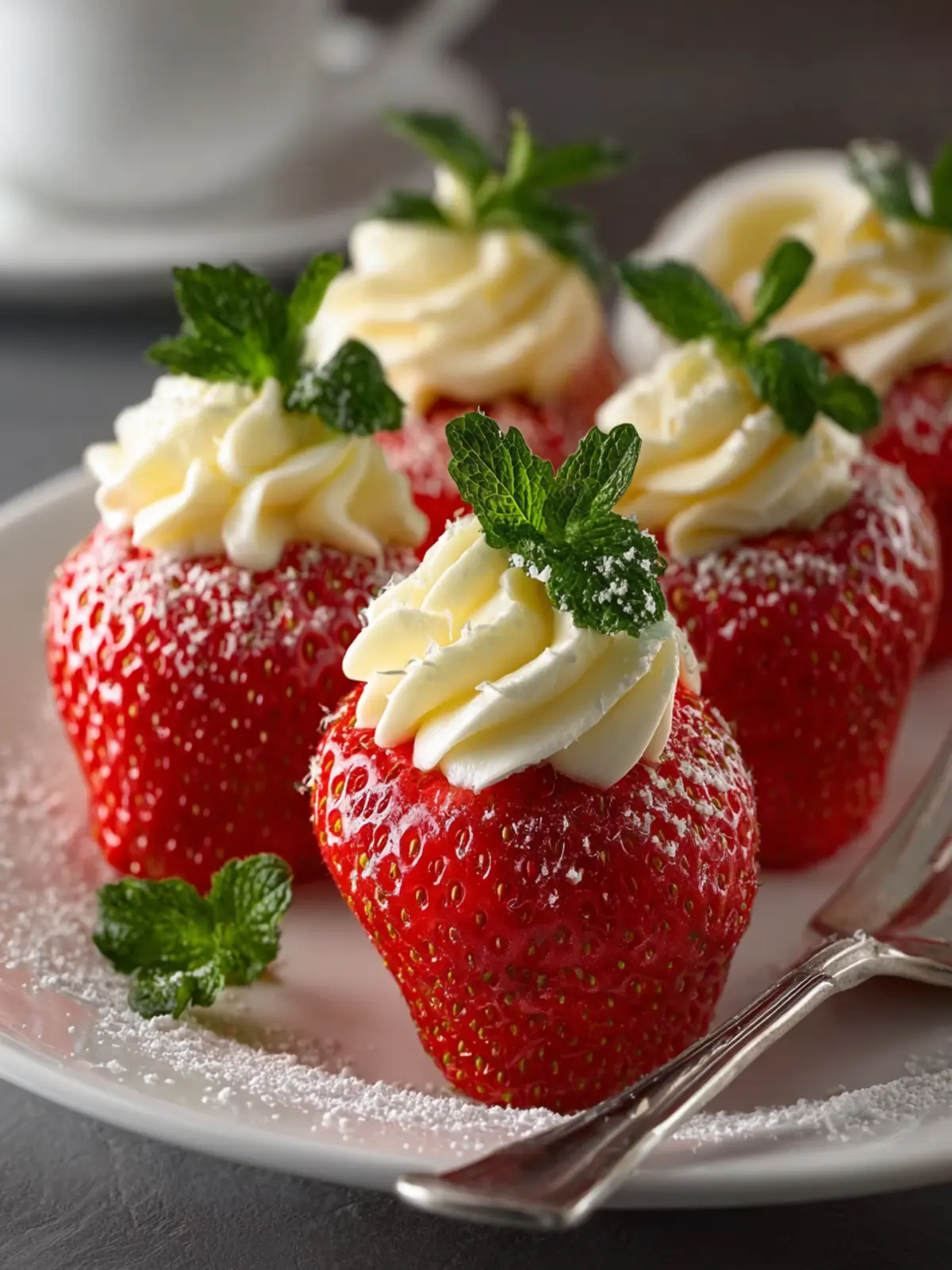 A simple garnish can elevate your sweet lemon cream stuffed strawberries. Consider popping a mint leaf on top for a pop of color and an extra layer of freshness.