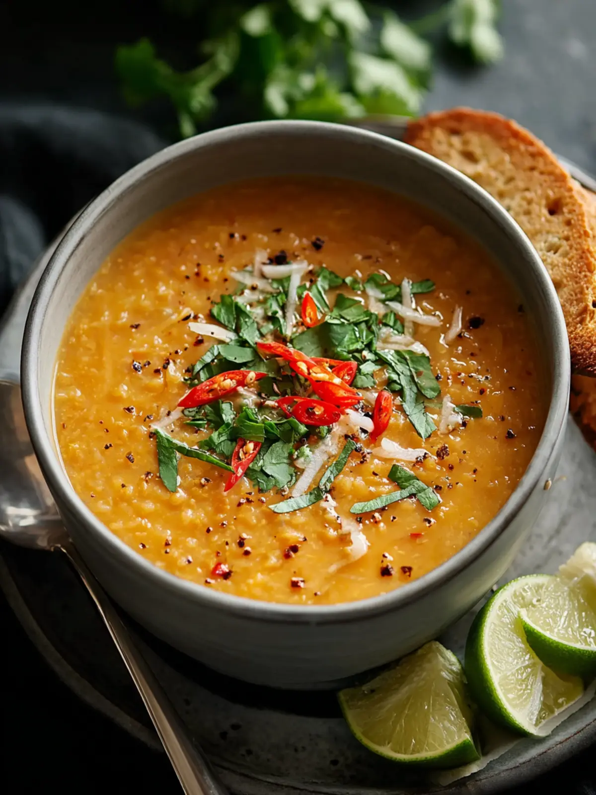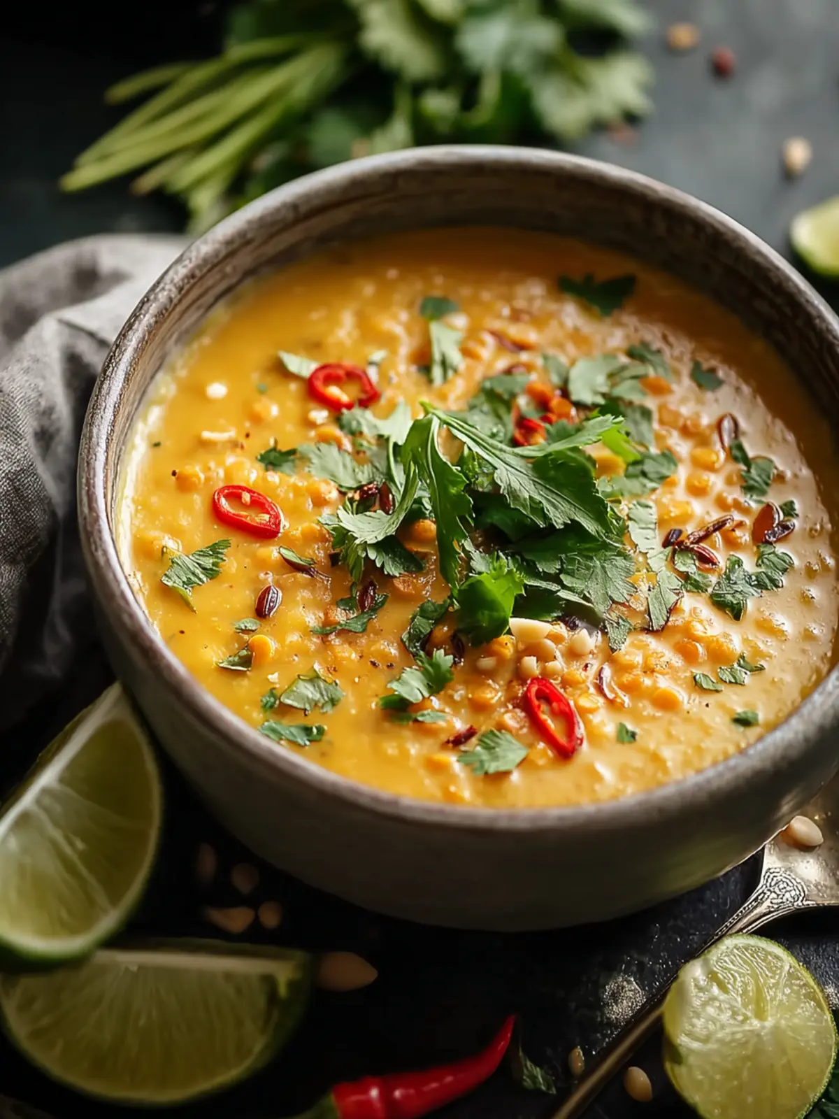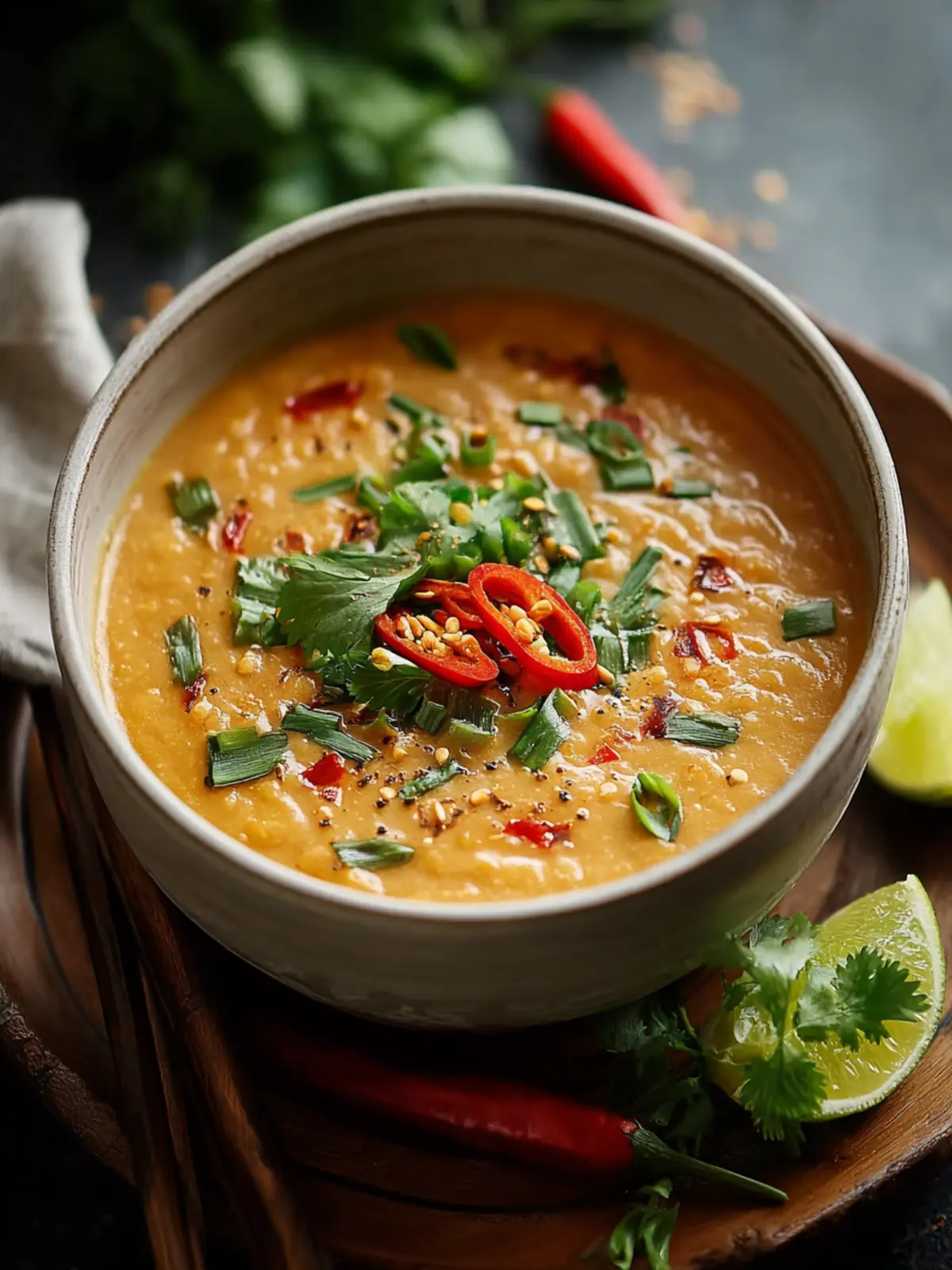 A delicious and hearty Thai red curry lentil soup with a blend of vibrant flavors.