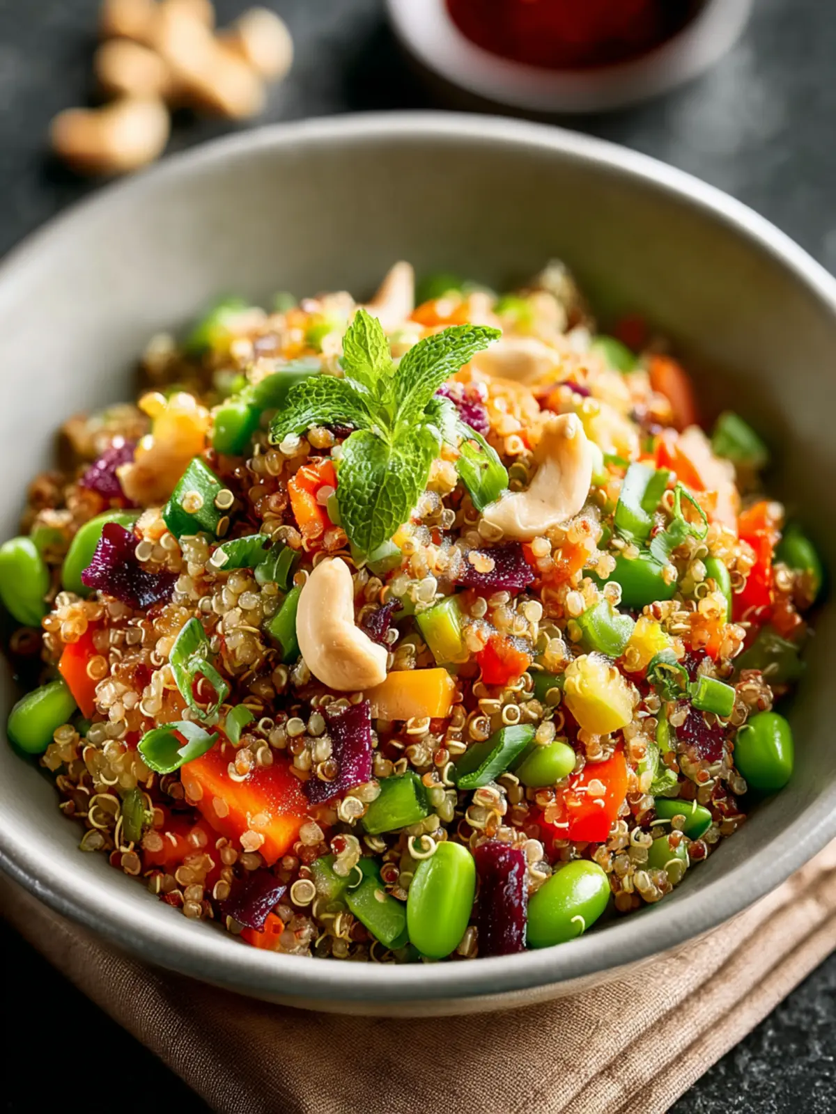 Whether you’re looking for a quick lunch option, a side dish for dinner, or a light meal on its own, the Vibrant Thai Quinoa Salad gives you everything you need in a wholesome, joyful bowl. Prepare to delight your taste buds and elevate your meals with this colorful and nutritious dish!