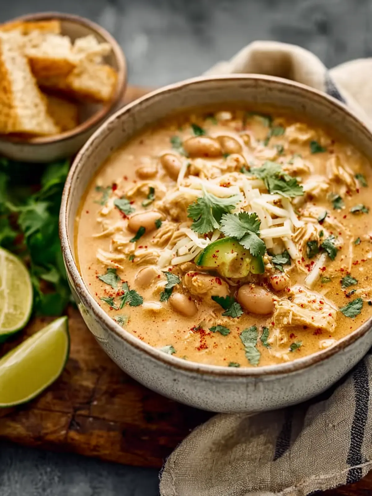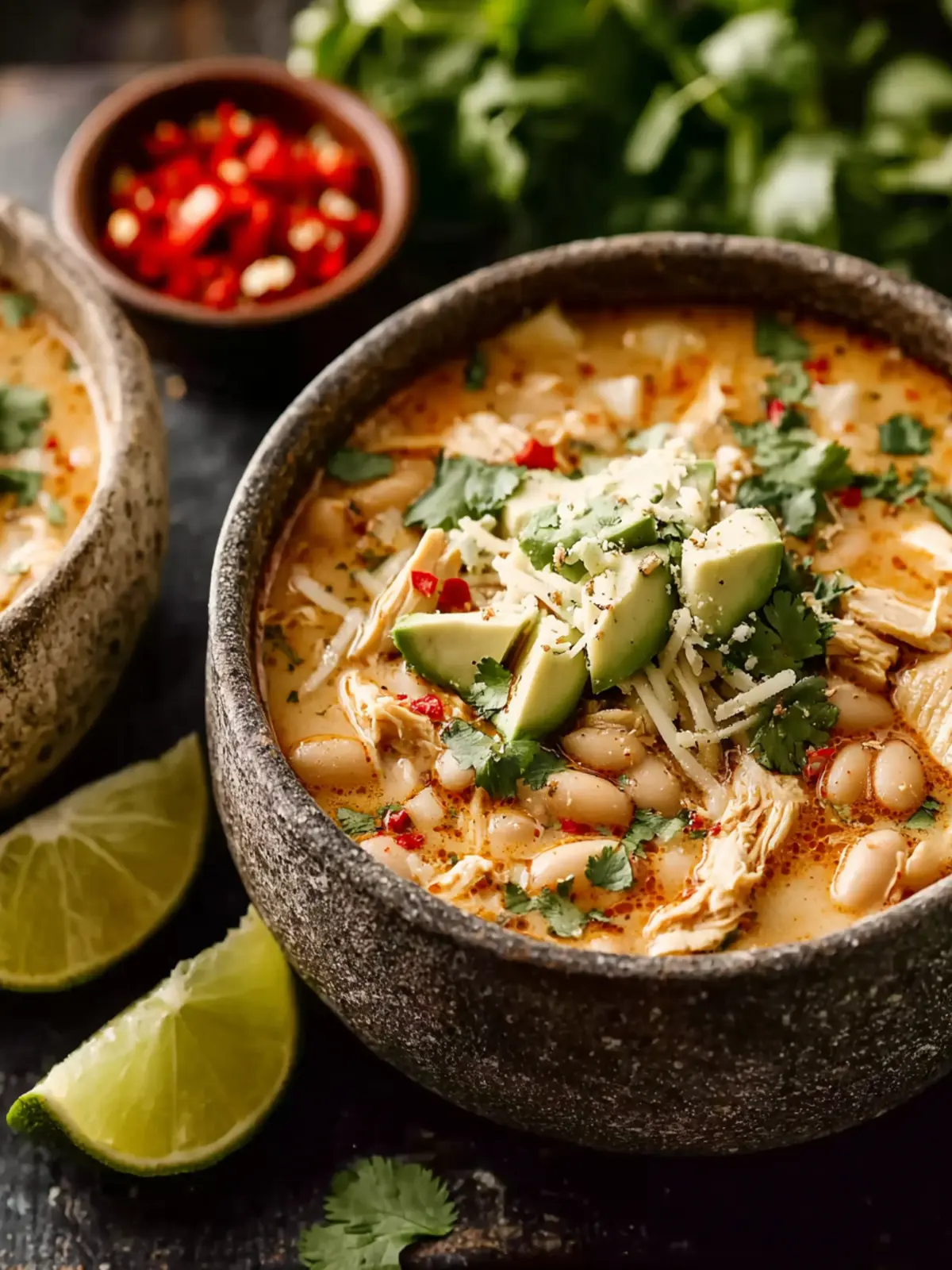 A comforting chicken chili soup that’s easy to cook and full of flavor.